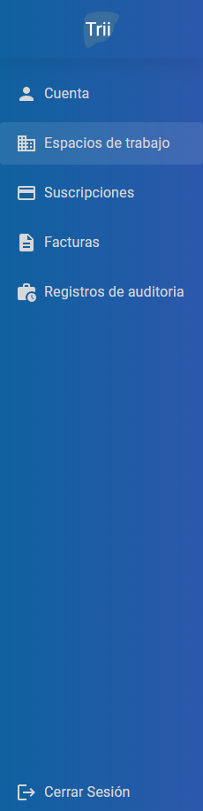 * Desde el **meú principal** o **panel izquierdo** de la plataforma, seleccioná la opción "Espacios de Trabajo". Esto te llevará a la página donde se gestionan todos los espacios de trabajo en lo que eres miembro